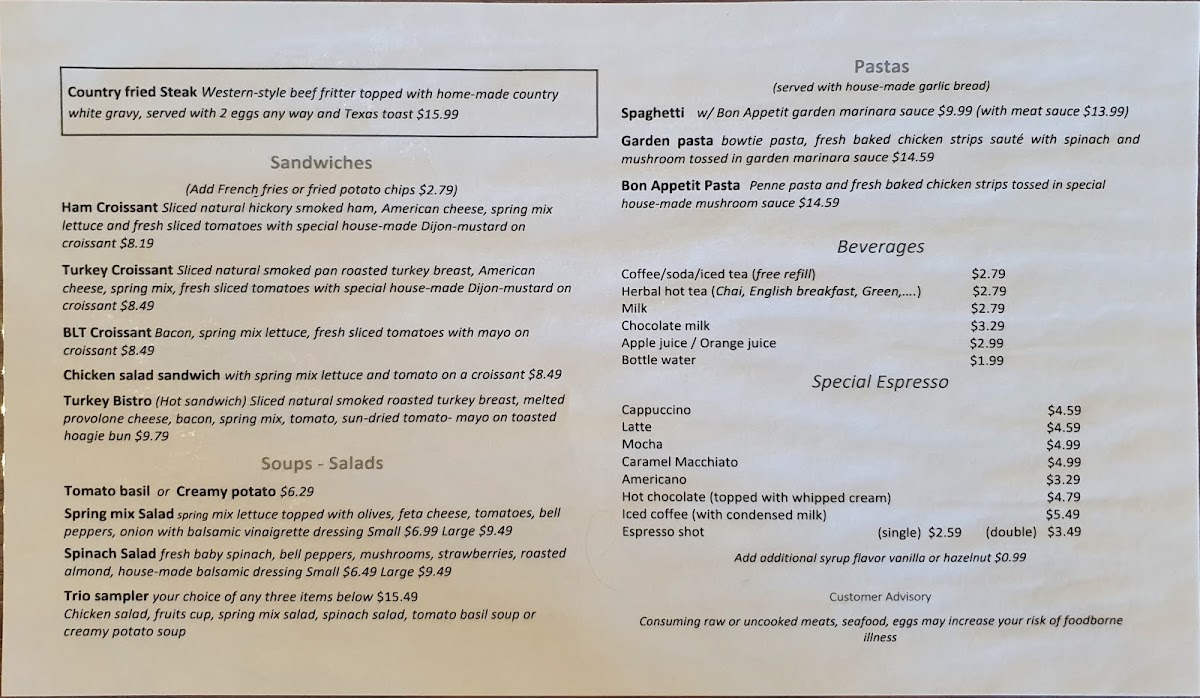 For a delightful breakfast or lunch emblazoned with traditional American flavors and a touch of creativity, Bon Appetit Cafe is a must-visit destination. Come revel in a dining experience that is as comforting as it is delicious, and leave with a full belly and a happy heart.